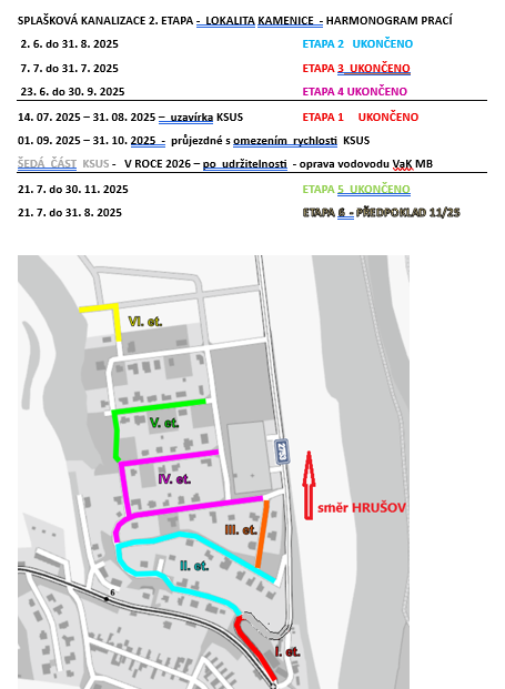 SPLAŠKOVÁ KANALIZACE 2. ETAPA - LOKALITA KAMENICE - HARMONOGRAM PRACÍ